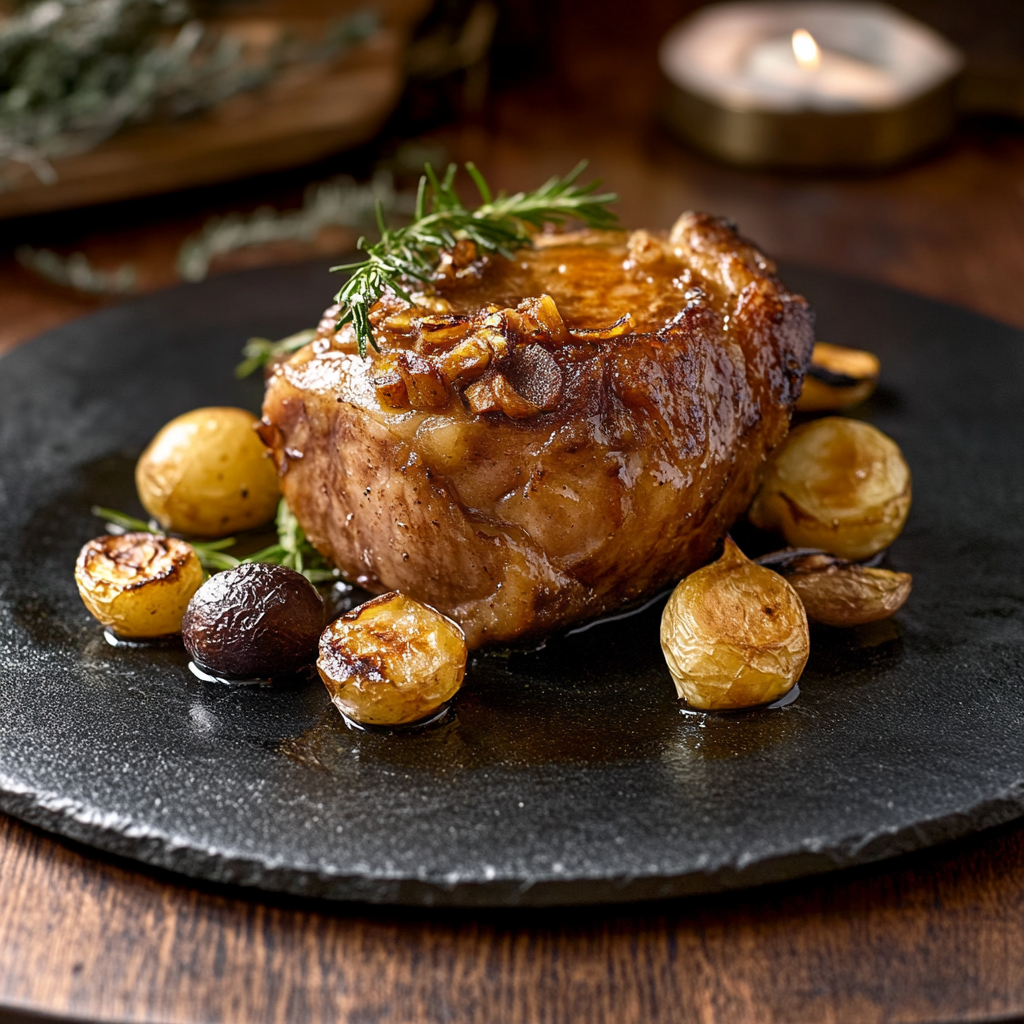 La particularité du Gigot d’Agneau de Sept Heures réside dans sa cuisson lente à basse température, qui permet de transformer une pièce de viande, parfois ferme, en une texture incroyablement fondante, au point qu’elle peut être découpée à la cuillère. Ce processus de cuisson lente infuse la viande avec les saveurs des herbes, des épices et des aromates qui l’accompagnent, créant un équilibre parfait entre le goût riche de l’agneau et les notes subtiles des ingrédients environnants.